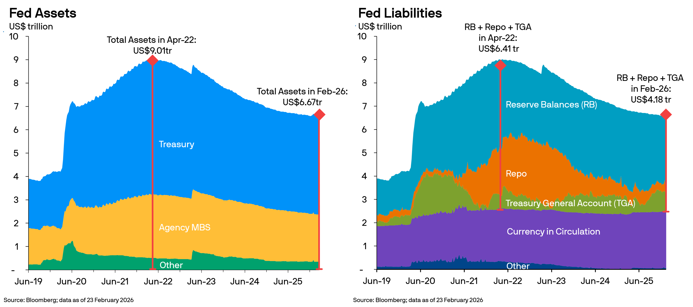Looking ahead to potential changes in Federal Reserve leadership, the market consensus is that a new chair is unlikely to enact significant shifts in policy. Current economic constraints, including the size of the Fed’s balance sheet and liquidity conditions in the banking sector, limit the scope for drastic changes. The Fed’s balance sheet, particularly bank reserves, has already contracted considerably, and further reductions could strain liquidity. As a result, continuity is expected, with little difference in policy direction regardless of leadership changes.