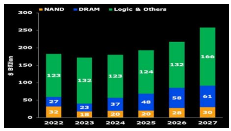 依NAND(非揮發性記憶體)、DRAM (動態隨機存取記憶體)、Logic & Others(邏輯晶片及其他)分類