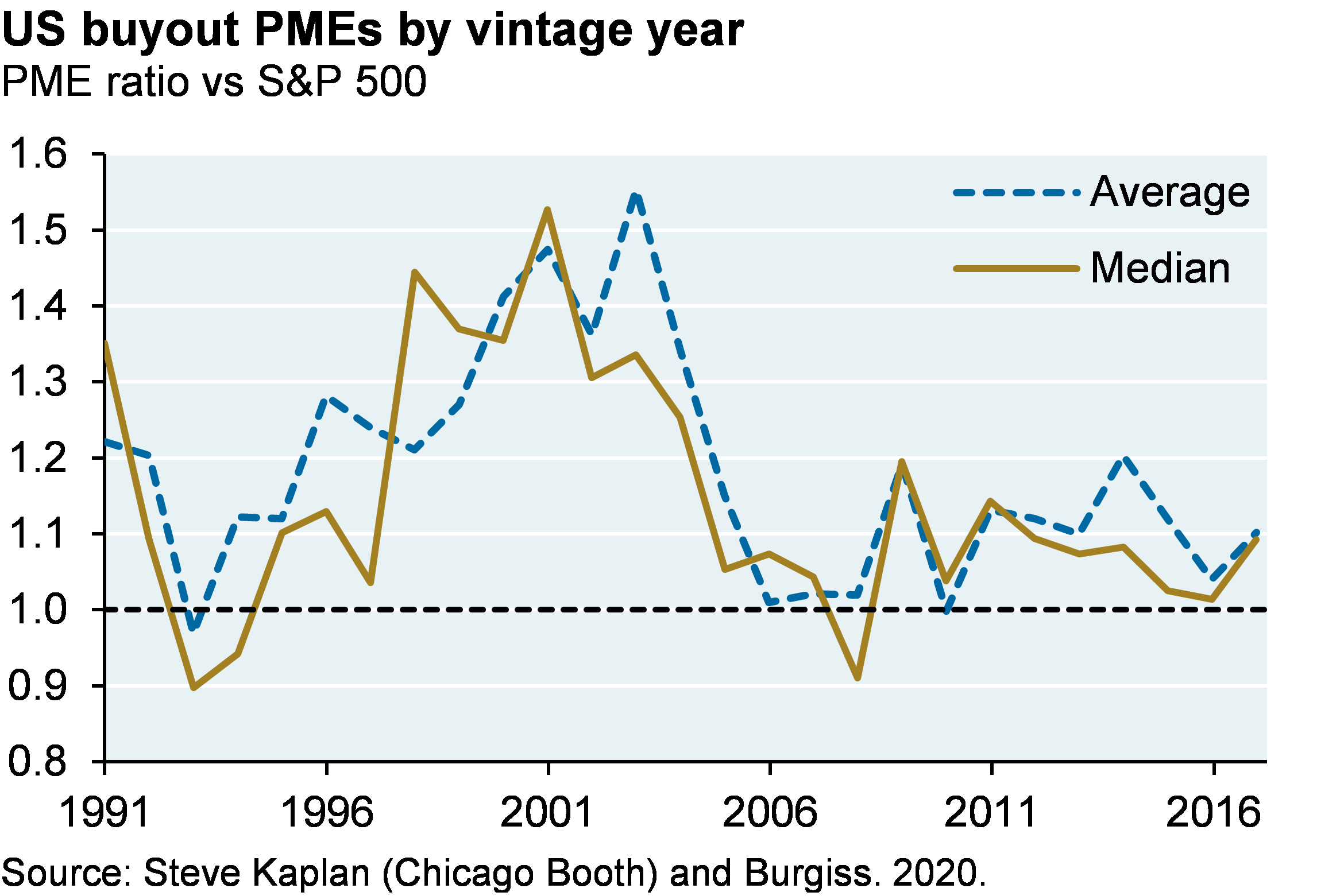 Are the recent annualized 1%-5% excess returns over public equity markets since 2009 enough given the illiquidity of private equity? Rather than apply an abstract derived cost of liquidity, most investors will judge for themselves whether these returns suffice based on their consistency and magnitude.
