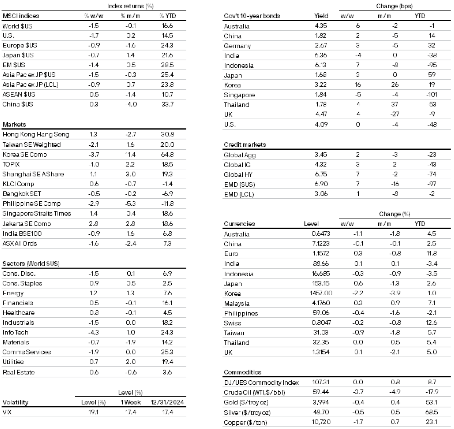 All returns in local currency unless stated otherwise.