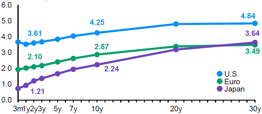 Treasury Yield Curves of the U.S., Japan and Europe