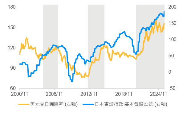 日圓匯率及東證指數基本每股盈餘(單位:日圓)