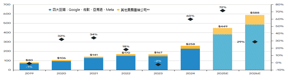 美國主要雲端公司積極擴大支出,推動AI投資熱潮