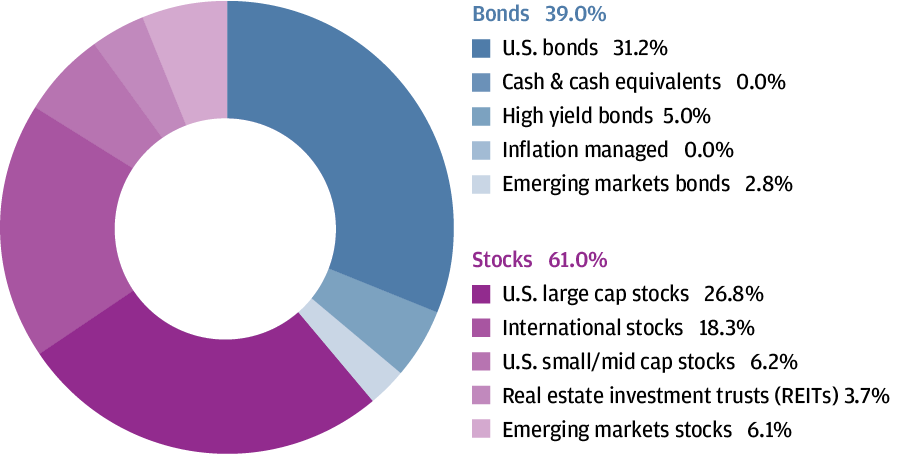 When you select a SmartRetirement Fund, you're automatically invested in more than 20 underlying funds across two asset classes - stocks and bonds. By investing in the fund, a team of more than 100 investment professionals at J.P. Morgan is responsible for shifting the allocation from stocks to bonds as the fund approaches its target date. This way your fund automatically changes to become more conservative as you approach your target retirement date.