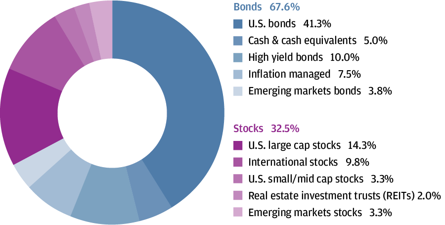 When you select a SmartRetirement Fund, you're automatically invested in more than 20 underlying funds across two asset classes - stocks and bonds. By investing in the fund, a team of more than 100 investment professionals at J.P. Morgan is responsible for shifting the allocation from stocks to bonds as the fund approaches its target date. This way your fund automatically changes to become more conservative as you approach your target retirement date.